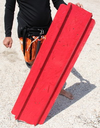 Ультра новый концепт-борд от Завода Древесно Стружечных Плит поразил нас смелостью решений! Это действительно новое слово в доскостроении!!! Создание концепта было спровоцировано слухами о том, что кайтбординг становится олимпийским видом спорта. Концепт был создан неизвестным дизайнером за один час и предоставлен на тесты местной мусоркой.  Революционный подход открывает новое направление в создании рейковых досок!!! (не путать с рейсовыми). Суть идеи состоит в том, что продольный плавник изготовлен из цельного куска дерева по всей длине скользяка. В рейковом борде используется революционный нулевой рокер. Такая конструкция поднимает брызги из воды и регулярно обливает райдера плотным душем. По предположением автора, это защищает от перегрева, возникающего при максимальных нагрузках.  Дека изготовлена из древесно-стружечной плиты нового поколения. Пропитка новым клеем ПВА обеспечивает водоотталкивающий эффект. Такая конструкция дает острое вырезание в слабый ветер и не оставляет ни единого шанса конкурентам! Выборки по углам борда гарантируют мягкое приводнение на спину и сохранят целыми ваши ноги! Конструкторы петель тоже не обошлись без ноу хау! В начале автор хотел использовать бюстгальтер для петель, но учитывая, что среди райдеров могут быть дети, автор заменил их на отцовский ремень. Надежную фиксацию обеспечивают 4 шурупа 30мм из каленой стали. Как и любой концепт, борд не обошелся без дизайна! Покрытие скользяка сделано вручную лаком для ногтей красного цвета. Розовый к сожалению в магазине разобрали конкуренты.  По неофициальным данным, автор собирается наполнить все мусорки на спотах новыми бордами так, чтобы у райдеров не возникал вопрос выбора. Ходят слухи, что сейчас идут переговоры со всеми ведущими Заводами ДСП о выкупе прав на изготовление таких бордов. Автор обещает, что после небольшой доработки борды будут скользить и по песку и по снегу, таким образом создавая конкуренцию производителям сноубордов! Гениальность в простоте, вот девиз автора в 2012г.