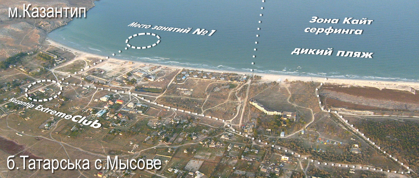 илистое. На этом споте ученики могут безопасно "выкатываться" после обучения, овладевать техникой "вырезания", здесь просто приятно кататься начинающим кайтсерферам! Если Вы делаете первые шаги в кайтсерфинге, это незаменимое место для Вас! В 2008-ом кроме нас там особо никто не катался и не проводил уроки. Сегодня это уже популярное место для обучения и катания!