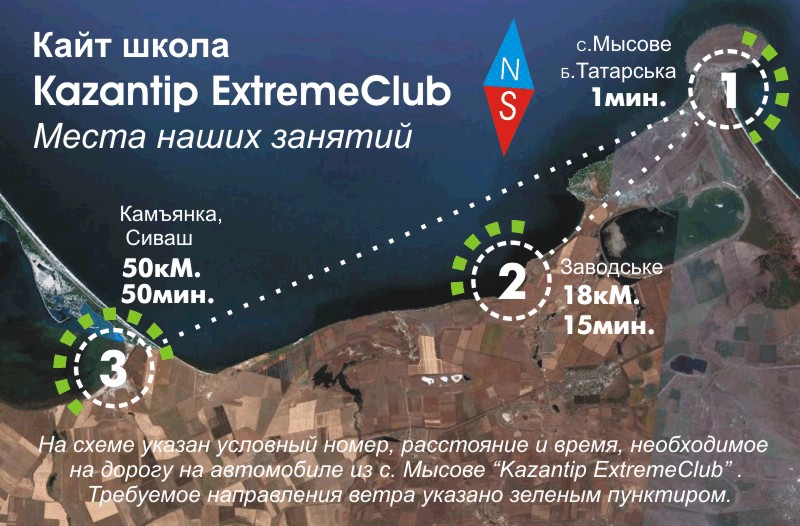 Как Видите, места есть на любую погоду и любой уровень. Любое направления ветра нам дает возможность заниматься. В каждом из этих мест у нас установлены автономные метеодатчики. Благодаря таким устройствам, я точно знаю, что происходит с ветром в этих местах, не выходя из "Kazantip ExtremeClub". Холостых выездов практически не бывает! Непосредственно перед выездом я всегда сверяю прогноз и проверяю наличие ветра в этих спотах! Если у Вас нет ясности о местах расположения этих спотов на карте Крыма, посмотрите эту схему. Также места можно можно найти на www.wikimapia.org. №2 №3 №4 *Трансфер к местам занятий и обратно в стоимость обучения не ходит.